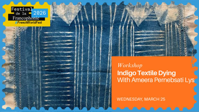 Create your own unique tiny textiles and experiment in the ancient traditional use of indigo vat dye! As part of Festival de la Francophonie 2026, Chicago-based Haitian-American visual artist Ameera Pernebsati Lys is offering an indigo textile dyeing workshop in connection with her exhibition Roots of Resilience, on display in the Eleanor Wood Prince Salon through March 31.