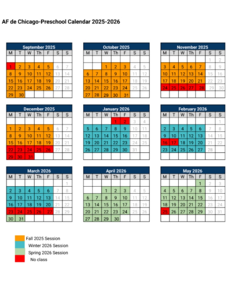 By prioritizing hands-on learning and active communication, our dynamic curriculum ignites students’ intellect and love for language. We follow AF–Chicago’s commitment to personal and individualized learning by accepting a maximum of 11 children per class.