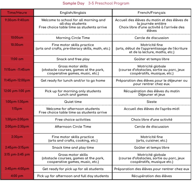 Prepare your child for their scholastic journey through an immersive French curriculum! Our preschool is conducted in French by our experienced and engaging teachers, with assistance in English only when necessary.